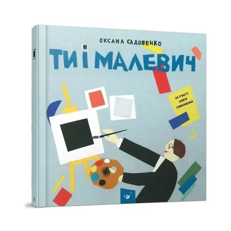 «Ти і Малевич» — це книжка-альбом із творчими завданнями, наліпками, розмальовками, яка дитині 5–13 років дає можливість уявити себе учнем чи ученицею Казимира Малевича. Кожен розгорт книжки присвячено одній із головних ідей художника, що спонукає не тільки читати й пізнавати, а й самостійно створити свою версію «Чорного квадрата», супрематичну композицію, проєкт планіту для земляніта, відкрити першоелементи, безпредметність та зрозуміти персонажів картин Малевича, розмалювавши їх по-своєму. Завдання книжки-альбома — не вичерпно відповісти на порушені питання, а стати для дитини путівником у творчість. Девіз Людина — єдина істота, здатна мислити абстрактно. Розвиваючи в собі цю здатність, ми віддаляємося від тварин. Сила Знайди силу "Чорного квадрата"!