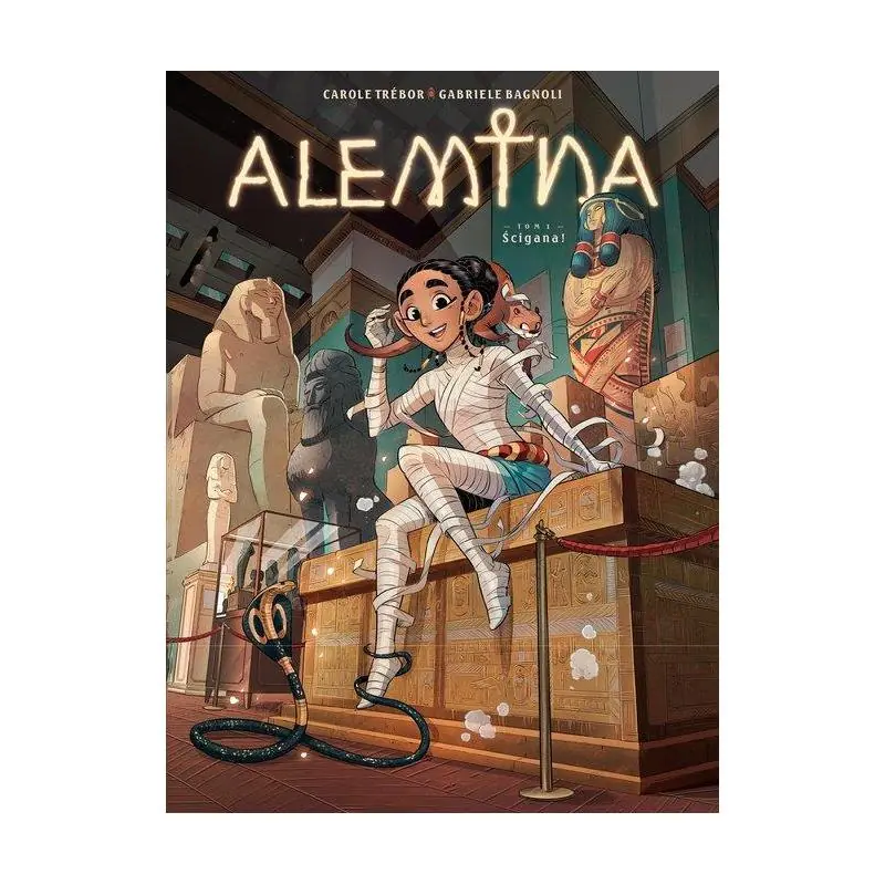 Pierwsza część przygodowej opowieści o Wyjątkowych, niesamowitych istotach z dawnych czasów, które dzisiaj żyją w ukryciu. Muzea archeologiczne nie są miejscami, po których nocą krążą nastolatki, jednak Alemina nie jest zwykłą dziewczyną... To przebudzona mumia egipskiej księżniczki! Opuszcza sarkofag tylko po zmroku, dlatego jest ciekawa, jak wygląda współczesny świat. Nie przypuszcza, że już wkrótce będzie mogła się o tym przekonać, bo okoliczności zmuszą ją do wyruszenia w daleką wędrówkę. Rozpoczyna się opowieść o ucieczce Aleminy przed bezwzględnymi agentami tajnej organizacji, która poluje na takie jak ona niezwykłe istoty! Autorką scenariusza jest francuska historyczka, pisarka i autorka filmów dokumentalnych Carole Trébor, która została obsypana nagrodami literackimi za cykl powieści o Ninie Volkovitch. Jako scenarzystka komiksowa jest znana z albumu kryminalnego „Rouges estampes” i serii dla dzieci „Paloma”. Gabriele Bagnoli to włoski rysownik i kolorysta pracujący przede wszystkim dla wydawców włoskich, a na rynku francuskim znany z serii fantastycznej „La Bulle”.