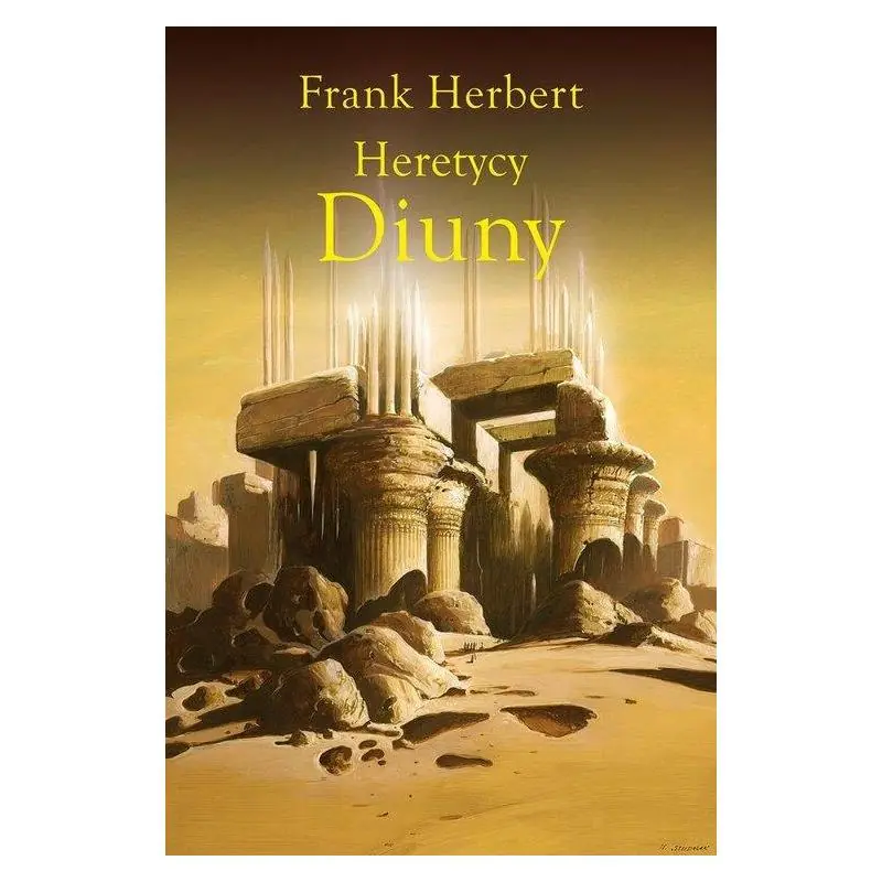 Piąty tom sześciotomowego cyklu „Kroniki Diuny” z obrazem i rysunkami Wojciecha Siudmaka. Gdy Lucylla skupiła wzrok na Tegu, nagle przemknęła przez nią jedna z najgłębiej wszczepionych reakcji Bene Gesserit. Fazy tej reakcji mogły być określone później. „Coś jest nie tak! Niebezpieczeństwo! Teg to nie Teg!” W nagłym błysku reakcji wszystkie fazy zlały się w jedno. Odpowiadając, użyła z wszystkich sił Głosu: — Duncan! Padnij! Duncan padł na trawę, nie odwracając wzroku od Tega trzymającego polową rusznicę laserową. „Maskaradnik!” — pomyślała Lucylla. Tylko jej nadczujność go ujawniła. „Jeden z tych nowych!” — Maskaradnik! — krzyknęła. Duncan rzucił się w bok i skoczywszy w górę, leciał poziomo co najmniej metr nad ziemią. Szybkość jego reakcji wstrząsnęła Lucyllą. Nie wiedziała, że ktokolwiek może poruszać się tak szybko. Pierwszy strzał z rusznicy przeszedł pod Duncanem, który zdawał się płynąć w powietrzu. Lucylla skoczyła z galerii, chwytając w locie parapet okna poniżej, a nim się zatrzymała, jej prawa dłoń wystrzeliła i znalazła wystającą rurę spustową, której położenie podpowiedziała jej pamięć. Wygięła się w bok i zeskoczyła na podokiennik niższego piętra. Pchała ją desperacja, chociaż wiedziała, że nie zdąży. Blisko półtora tysiąca lat po śmierci Boga Imperatora we wszechświecie dużo się zmieniło. Nie ma Imperium, Rakis nie jest już jedynym źródłem melanżu, a rybomówne straciły wpływy. Tleilaxanie, Ixanie i Bene Gesserit pozostali jednak na scenie, a nieżyjący Leto II wciąż kładzie się cieniem na ich przyszłości. Walcząc o supremację, a zarazem usiłując ocalić zgromadzenie przed napływającymi z Rozproszenia Dostojnymi Matronami, Bene Gesserit układają diaboliczny plan. W jego centrum tkwią kolejny ghola Duncana Idaho i żyjąca na Rakis dziewczyna, która... rozkazuje czerwiom. „Wciągająca i porywająca... Fascynuje szczegółami, a zarazem spowita jest aurą tajemnicy i mistycyzmu” - „Milwaukee Journal” Dom Wydawniczy REBIS wydał sześciotomowy cykl „Kroniki Diuny”, na który składają się powieści: Diuna, Mesjasz Diuny, Dzieci Diuny, Bóg Imperator Diuny, Heretycy Diuny i Kapitularz Diuną.