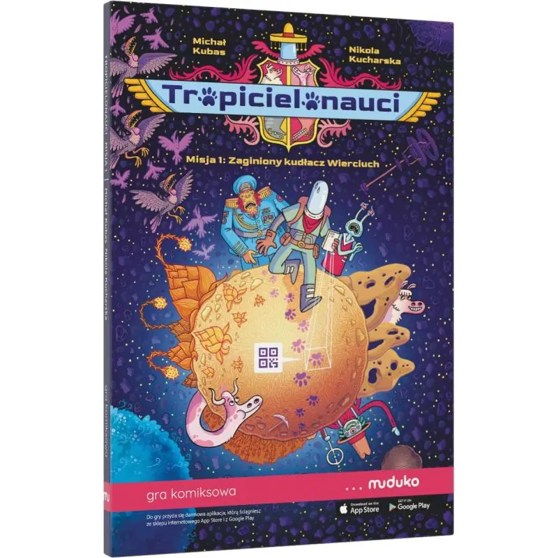 Do jasnej komety! Zaginął kudłacz Wierciuch… Tropicielonauto – czeka Cię nowa misja! Aby rozpocząć interaktywną przygodę, otwórz książkę, wciel się w tropicielonautę i zacznij czytać komiks paragrafowy, który szybko przeniesie cię do kosmicznej rzeczywistości. Za chwilę podejmiesz ważne decyzje – akcja może potoczyć się przeróżnie, w zależności od tego, co wybierzesz. Czy skierujesz swoje kroki do jaskini, a może opuszczonej osady? Wszystko zależy od Twoich wyborów. To nie wszystko! Chwyć za telefon, a właściwie tropibota – urządzenie telefoniczne wyposażone w aplikację. Skanuj kody QR z komiksu, a otrzymasz dostęp do informacji na wagę kosmicznego złota! Dzięki temu twoja misja będzie jeszcze ciekawsza, a Ty unikniesz niebezpieczeństw i podejmiesz lepsze, świadome wybory. A jeśli uda Ci się odnaleźć zaginionego kudłacza Wierciucha, kto wie… Może trafisz do galerii osobistości? Innowacyjna gra komiksowa z bezpłatną aplikacją – napisana i zilustrowana przez Nikolę Kucharską i Michała Kubasa.
