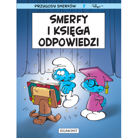 Następna komiksowa opowieść o słynnych Smerfach! Mieszkańcy wioski w środku wielkiego lasu znów są w opałach! Prawdziwe jest powiedzenie, że kiedy Papy Smerfa nie ma, Smerfy harcują. Podczas kolejnej nieobecności przywódcy wioski Ważniak znajduje w jego biblioteczce niezwykłą księgę, która zna odpowiedzi na wszystkie pytania... Całą wioskę opanowuje gorączka: każdy Smerf chce jak najszybciej poznać sposób na rozwiązanie swoich problemów. A że księgą opiekuje się Ważniak, po raz pierwszy ma szansę stać się kimś naprawdę ważnym wśród Smerfów. Co więcej, zaczyna mu się marzyć zajęcie miejsca Papy... Wkrótce zaczynają się prawdziwe kłopoty! Jak zakończy się szalona przygoda z magiczną – a przez to bardzo niebezpieczną – księgą? Smerfy wymyślił belgijski scenarzysta i grafik Pierre Culliford (1928–1992), używający pseudonimu Peyo. Obecnie autorami serii są następcy Peyo, w tym jego syn Thierry.