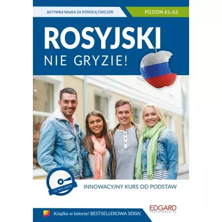 Unikalny kurs do samodzielnej, aktywnej nauki języka rosyjskiego! Wyjątkowo skuteczna metoda nauki oparta na rozwiązywaniu licznych, różnorodnych ćwiczeń. Wciągające, zróżnicowane zadania zaznajomią cię z niezbędnym słownictwem, podstawami gramatyki i gotowymi wzorcami konwersacyjnymi. Dzięki nim trenujesz wszystkie kompetencje językowe: czytanie, mówienie, słuchanie i pisanie. W każdym rozdziale znajdziesz nowe słówka, porcję gramatyki, razem z ćwiczeniami, ciekawe teksty, zadania podsumowujące, by sprawdzić, ile już umiesz oraz interesujące informacje o Rosji. Znaczenie nowych słówek możesz sprawdzić na marginesie, a jeśli zawiedzie cię pamięć – na końcu znajdziesz zbiorczy słownik. Do książki dołączono płytę mp3 z nagraniami, by trenować poprawną wymowę i rozumienie ze słuchu.Unikalny kurs do samodzielnej, aktywnej nauki języka rosyjskiego! Wyjątkowo skuteczna metoda nauki oparta na rozwiązywaniu licznych, różnorodnych ćwiczeń. Wciągające, zróżnicowane zadania zaznajomią cię z niezbędnym słownictwem, podstawami gramatyki i gotowymi wzorcami konwersacyjnymi. Dzięki nim trenujesz wszystkie kompetencje językowe: czytanie, mówienie, słuchanie i pisanie. W każdym rozdziale znajdziesz nowe słówka, porcję gramatyki, razem z ćwiczeniami, ciekawe teksty, zadania podsumowujące, by sprawdzić, ile już umiesz oraz interesujące informacje o Rosji. Znaczenie nowych słówek możesz sprawdzić na marginesie, a jeśli zawiedzie cię pamięć – na końcu znajdziesz zbiorczy słownik. Do książki dołączono płytę mp3 z nagraniami, by trenować poprawną wymowę i rozumienie ze słuchu.