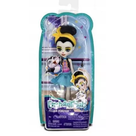 Lalka Enchantimals Preena Penguin jest naprawdę wyjątkowa. Posiada piękną sukienkę z przewagą jasnoniebieskiego koloru. Na nogach znajdują się gustowne niebieskie buty idealnie pasujące do całej kreacji. Włosy Preeny są koloru czarnego spiętego w wygodny koczek.