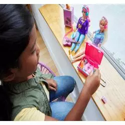 Wypełnij walizkę i już ozdobiony, różowy plecak przedmiotami niezbędnymi w podróży, takimi jak telefon komórkowy, opaska na oczy, poduszka pod szyję i słuchawki. Po dotarciu na miejsce Barbie może się odświeżyć, korzystając ze szczoteczki i pasty do zębów, które mieszczą się w jej kosmetyczce. Następnie może założyć okulary przeciwsłoneczne i wyjść, aby robić zdjęcia zwiedzanych miejsc. Jest gotowa na każdą przygodę w jeansowej sukience z paskiem i modnych tenisówkach. Ciekawe świata małe podróżniczki pokochają zabierać ją na bliskie i dalekie wyprawy, by razem poznawać świat, bo gdy dziewczynki bawią się z Barbie, odkrywają, że mogą być kim chcą.