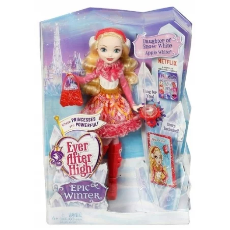 Apple White z serii Zima Wszech Baśni Ever After High ma piękne , długie blond włosy, które dziewczynki mogą czesać .