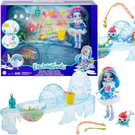 Zanurz się w świecie zabawy z lalką Sashay Seal i foczką Blubber! Są nierozłączne i nawet wyglądają podobnie! Przyjaciele Enchantimals mogą oddawać się zimowemu wędkowaniu dzięki zestawowi do zabawy, który zawiera ponad 10 akcesoriów!