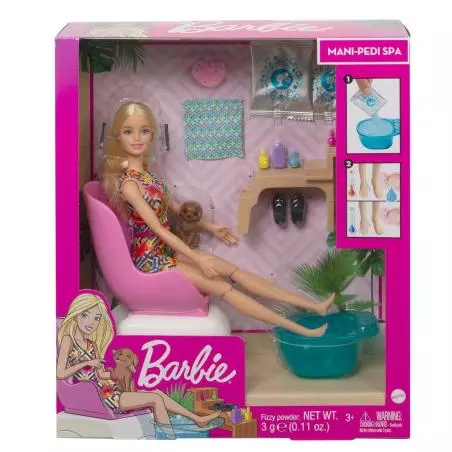 - Dzieci mogą odgrywać scenki związane z dbaniem o własne dobre samopoczucie, towarzysząc lalce Barbie podczas relaksu. Pomoże w tym zestaw do zabawy Mani-Pedi SPA