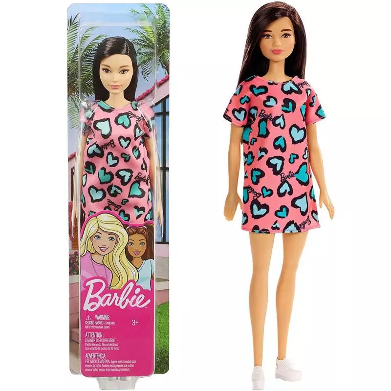 Kolekcja lalek Barbie sukcesywnie się powiększa, a dziewczynki mogą cieszyć się zabawą zupełnie nowymi wzorami. Lalka podstawowa w łososiowej sukience ma śliczne, lśniące, ciemne włosy, które idealnie podkreślają jej rysy twarzy i brązowe oczy ozdobione długimi rzęsami. Sukienka uszyta została z miękkiego materiału, odznacza się żywymi kolorami i wzorkami w zielone serduszka. Stylizację lalki dopełniają białe, sportowe sandały na koturnie. Lalka marki Mattel ma 30 cm wysokości, posiada ruchome ręce i nogi oraz obrotową głowę.