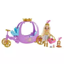 Przemierzaj świat Enchantimals z lalką Peola Pony w jej królewskiej karocy! Ta imponująca karoca ze złocistymi kołami, które naprawdę się kręcą, i luksusowymi detalami inspiruje do wymyślania królewskich przygód. W karocy jest mnóstwo miejsca do siedzenia – za kierownicą, z tyłu, a nawet na górze. Możesz przemierzać miasto razem z lalką Peola Pony™ i jej zwierzątkiem lub zaprosić na przejażdżkę innych przyjaciół ze świata Enchantimals™ (inne lalki sprzedawane oddzielnie w zależności od dostępności). Popchnij pojazd, aby ruszyć w drogę! Mniejsze akcesoria, takie jak kosz i „desery”, zachęcają do opowiadania własnych historii. Zanim ruszysz na królewski bal, zrób piknik! Dzieci pokochają wyjątkową więź, jaka łączy bohaterów ze świata Enchantimals™! Kolory i elementy dekoracyjne mogą się różnić. Lalki nie stoją samodzielnie.