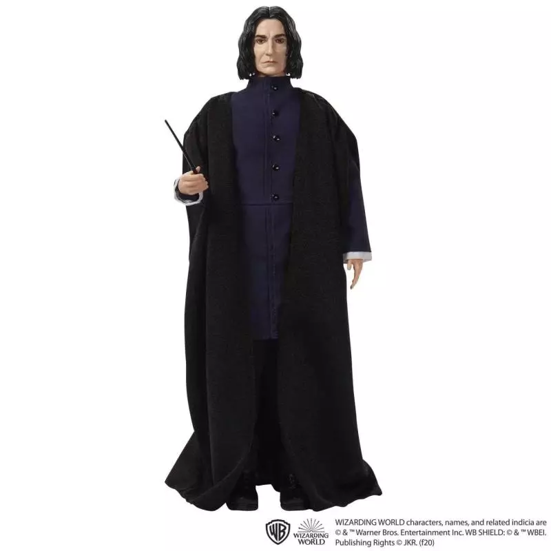 - Ta kolekcjonerska lalka Severus Snape™ wygląda jak w filmie, ubrana w czarny jednorzędowy garnitur i długą czarodziejską szatę.