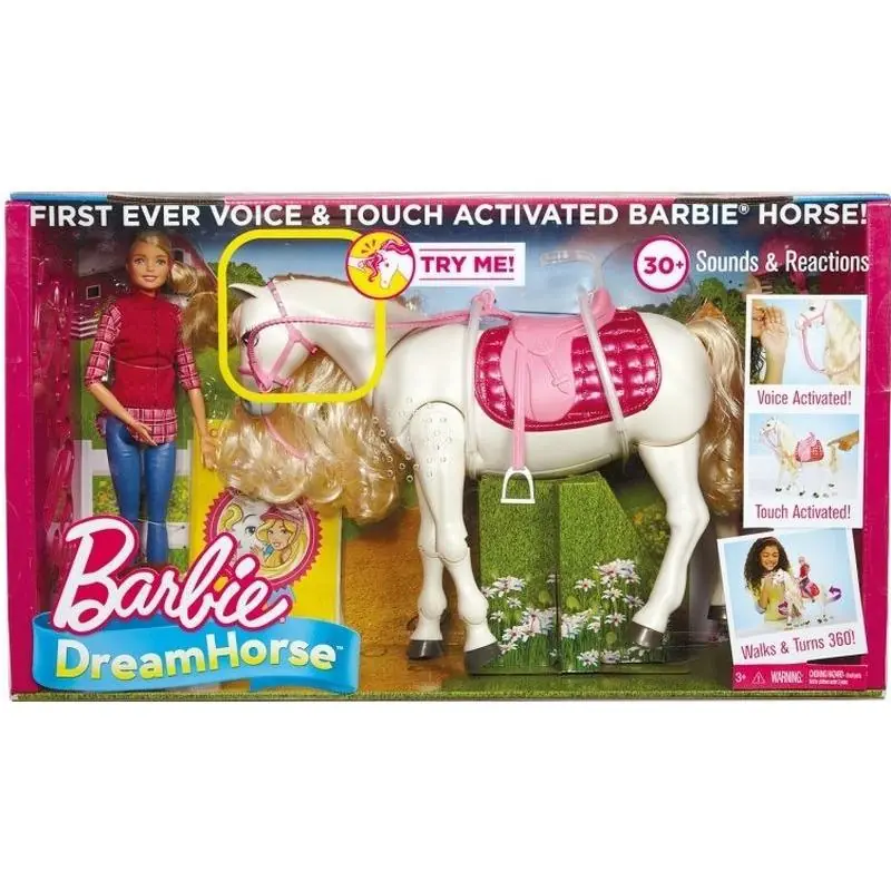 Przeżyj radość, jaką daje jazda konna dzięki zabawie z Interaktywnym Koniem Barbie. Interaktywny Koń Barbie reaguje na dotyk i dźwięk – oferuje ponad 30 realistycznych zachowań. Ten niezwykły konik potrafi iść stępa, obrócić się o 360 stopni i radośnie zarżeć w trakcie zabawy. Interaktywny Koń potrafi także „jeść”i słodko