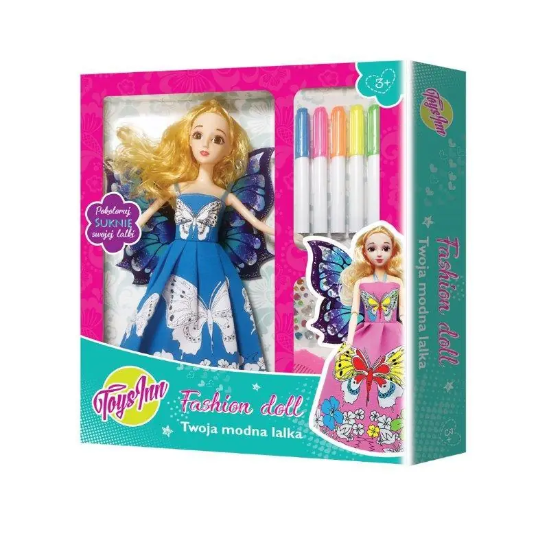 Pokoloruj suknię swojej lalki zgodnie z własnym projektem.