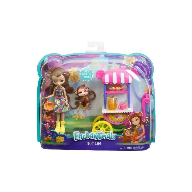 Daj się zabrać na baśniową przygodę do świata Enchantimals. Każdy zestaw zawiera pojazd na kółkach i wyjątkową lalkę Enchantimals oraz jej zaprzyjaźnione zwierzątko. A do tego mniejsze, tematycznie dobrane elementy, które wzbogacą każdą zabawę. Do wyboru lalka Enchantimals Merit Monkey z wózkiem z owocami i Taylee Turtle z rowerkiem na