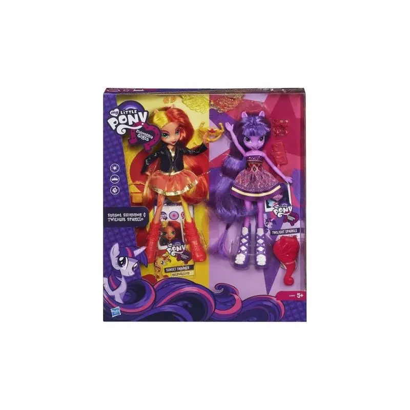 Equestria Girls szykują się do wielkiej imprezy w Canterlot High. Która z dziewczyn: Twilight Sparkle czy Sunset Shimmer zdobędzie koronę i będzie władać szkołą? Dzięki temu dwupakowi dziewczynki mogą zdecydować, która z nich zostanie księżniczką!
