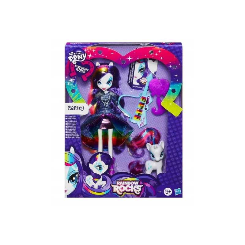 Zestaw lalka z kucykiem idealnie obrazuje magiczną historię o tym co łączy Equestria Girls ze światem kucyków My Little Pony. W tęczowym zestawie ekskluzywna Rarity z wyjątkowym kucykiem do pary oraz akcesoria.
