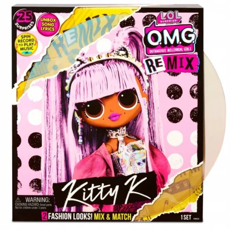 Lalka L.O.L. Surprise O.M.G. Remix Kitty Queen to wyjątkowa propozycja dla dzieci od 6. roku życia, które kochają modę, muzykę i kreatywną zabawę. Stylowa, w pełni ruchoma lalka z serii Remix przenosi zabawę na nowy poziom dzięki bogatemu zestawowi akcesoriów, elementom