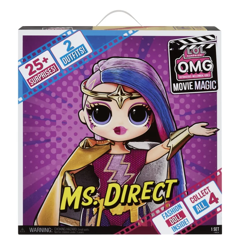 LOL Surprise OMG Movie Magic Ms. Direct to idealna lalka dla dzieci od 3 roku życia. Doskonale sprawdzi się jako prezent urodzinowy, świąteczny lub nagroda za dobre zachowanie. Zabawka wspiera rozwój kreatywności, zdolności manualnych i empatii poprzez zabawę w odgrywanie ról i tworzenie historii filmowych.