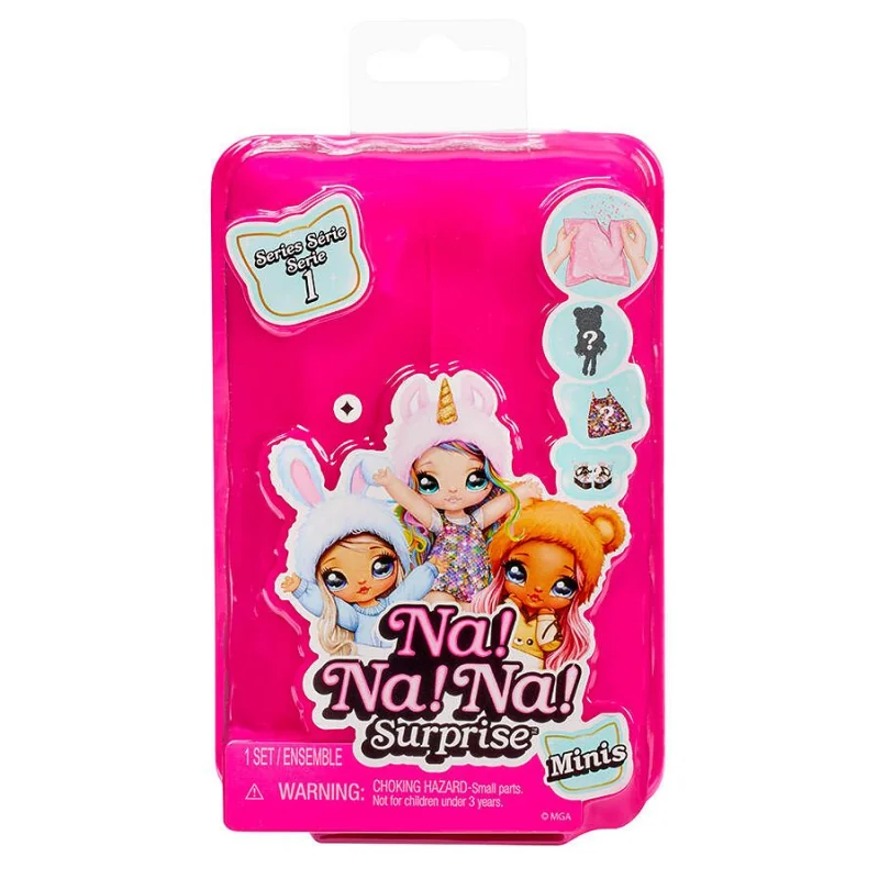 Na! Na! Na! Surprise Minis to urocza kolekcjonerska seria miniaturowych laleczek o wysokości ok. 10 cm, które zachwycają modnym stylem, wyjątkowymi detalami i miękkim wykończeniem. Każda figurka ma swoje imię, osobowość i unikalne ubranko. Seria 1 to idealna propozycja dla dzieci od 5
