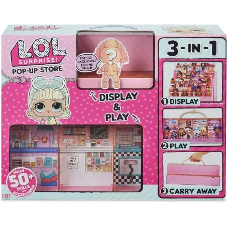 LOL Surprise Domek–Walizka to zupełnie nowy sposób na zabawę i przechowywanie kolekcji. Po rozłożeniu zamienia się w kolorowy mini świat pełen szufladek, zakamarków i przestrzeni do zabawy. Dziecko może tworzyć scenki w centrum handlowym, organizować własny sklep, kawiarnię lub przytulny domek. Walizka jednocześnie pełni funkcję ekspozytora – pozwala pięknie zaprezentować laleczki, siostrzyczki i zwierzątka.