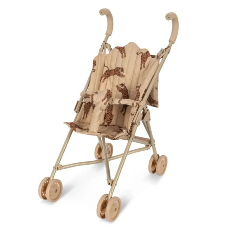 Wybierz wózek dla lalek KONGES SLOJD Tiger Oxford Tan, jeśli szukasz połączenia pięknego designu, wygody i wartościowej zabawy. To doskonały pomysł na prezent, który zachwyci dziecko i będzie towarzyszył mu każdego dnia.