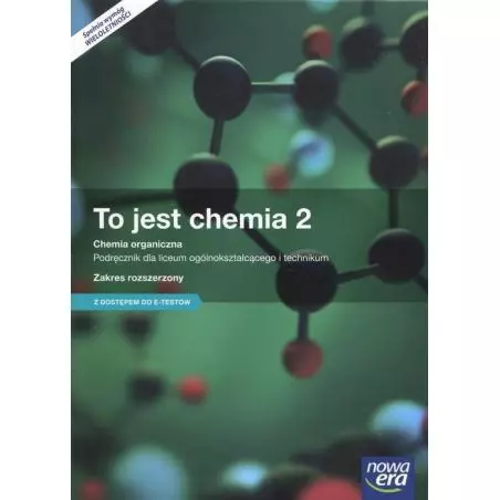 Przejrzysty podręcznik, który od pierwszych lekcji pomaga kształcić umiejętności potrzebne na egzaminie maturalnym. Umożliwia systematyczne przygotowania do egzaminu dzięki zadaniom typu maturalnego sprawdzającym wiedzę z każdego działu (Zadania maturalne i zadania z arkuszy maturalnych CKE, To było na maturze!) Ułatwia zdobycie umiejętności obliczeniowych dzięki rozwiązanym przykładom zadań różnych typów Kształci umiejętność samodzielnego projektowania eksperymentów, dzięki dokładnie opisanym doświadczeniom chemicznym Umożliwia powtórzenie wiadomości wprowadzanych na wszystkich etapach edukacji, gdyż zawiera wiadomości z zakresu podstawowego (Zamiast repetytorium) oraz zagadnienia poznane w gimnazjum (To było w gimnazjum) Wzbudza ciekawość uczniów dzięki atrakcyjnym infografikom oraz ciekawostkom odnoszącym się do życia codziennego (To jest interesujące) Razem z podręcznikiem kod dostępu do e-testów z interaktywnymi testami zamieszczonymi na terazmatura.pl. Praca z e-testami zapewnia: rzetelne sprawdzenie wiadomości i umiejętności z każdego działu, informację zwrotną o poprawności rozwiązań, systematyczne przygotowanie do egzaminu maturalnego.