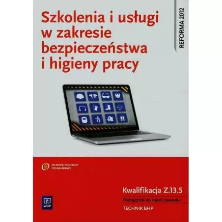 Podręcznik do nauczania w zawodzie technik bezpieczeństwa i higieny pracy realizujący treści z zakresu piątej części kwalifikacji Z.13 (Organizowanie i prowadzenie szkoleń oraz świadczenie usług z zakresu bezpieczeństwa i higieny pracy). W publikacji zawarto treści dotyczące warunków sprzyjających uczeniu się dorosłych, metod aktywizujących podczas prowadzenia szkoleń z wykorzystaniem nowoczesnych środków przekazu. Podręcznik prezentuje wiedzę i uczy umiejętności związanych z analizowaniem i różnicowaniem celów kształcenia w kategoriach wiedzy, umiejętności i postaw, opracowywaniem materiałów popularyzujących problematykę bhp oraz wyborem treści, metod nauczania i środków dydaktycznych do określonych celów szkolenia oraz do specyfiki grupy szkoleniowej.