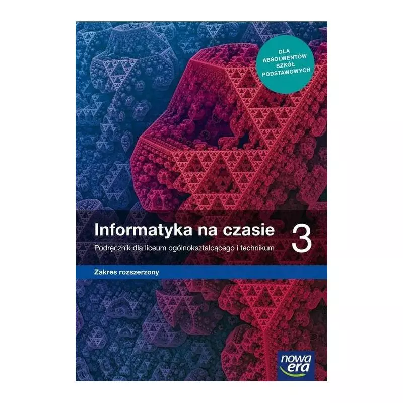 Podręcznik „Informatyka na czasie 3” do zakresu rozszerzonego zawiera wiedzę dotyczącą różnorodnych problemów algorytmicznych oraz programowania rozwiązań w języku C++, a także relacyjnych baz danych.