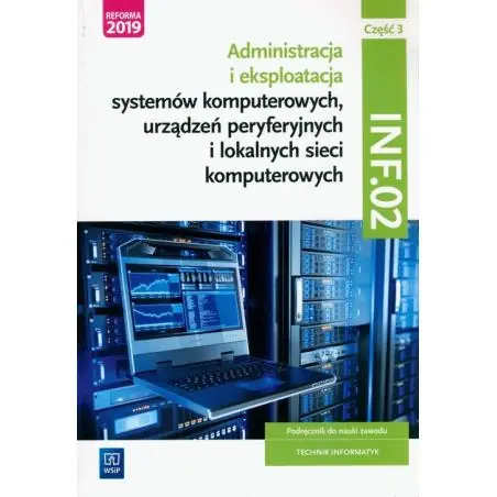 Najnowszy podręcznik do nauki zawodu technik informatyk obejmuje materiał z zakresu kwalifikacji INF.02 (Administracja i eksploatacja systemów komputerowych, urządzeń peryferyjnych i lokalnych sieci komputerowych).