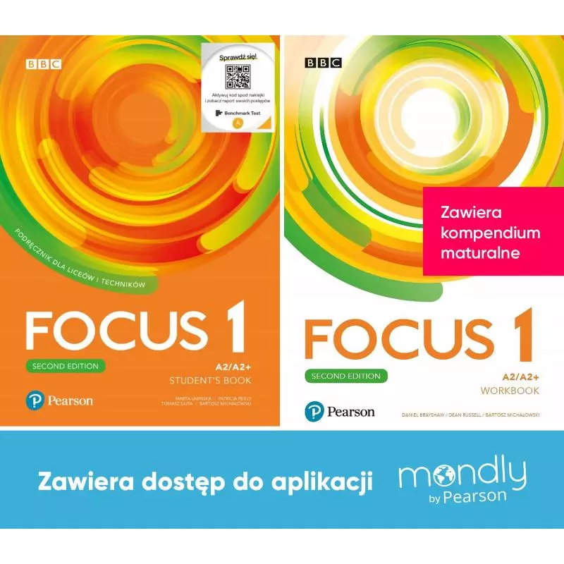 Komplet książek do nauki angielskiego Focus Second Edition Podręcznik + Zeszyt ćwiczeń Focus 1 to publikacje realizujące założenia podstawy programowej, pomagające doskonalić język angielski w piśmie i mowie. W skład zestawu wchodzi kod dostępowy do platformy MondlyWORKS.