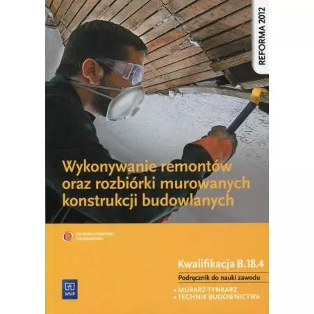 Podręcznik skierowany do uczniów kształcących się w zawodach technik budownictwa na podbudowie kwalifikacji B.18 i murarz-tynkarz z zakresu czwartej części kwalifikacji B.18 (Wykonywanie remontów oraz rozbiórki murowanych konstrukcji budowlanych).