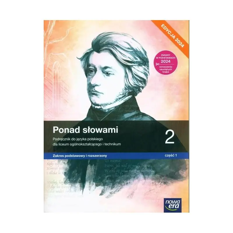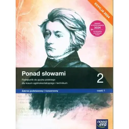 Edycja 2024. Publikacje dostosowane do zmian w podstawie programowej z 2024 r. Zawierają czytelne oznaczenia treści, które od września 2024 r. już nie obowiązują. Podręcznik Ponad słowami dla klasy 2 część 1, obejmujący romantyzm, w przystępny sposób przedstawia obraz epoki literackiej. Pozwala harmonijnie łączyć treści literackie,