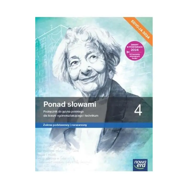 Edycja 2024. Publikacje dostosowane do zmian w podstawie programowej z 2024 r. Zawierają czytelne oznaczenia treści, które od września 2024 r. już nie obowiązują. Podręcznik Ponad słowami dla klasy 4, obejmujący współczesność, w przystępny sposób przedstawia obraz epoki literackiej. Pozwala harmonijnie łączyć treści literackie, kulturowe oraz językowe. Ma uporządkowaną strukturę: poszczególne obszary nauczaniasą podzielone na czytelnie oznaczone bloki; podręcznik charakteryzuje się także atrakcyjną szatą graficzną. Pozwala na poznanie kontekstu kulturowego epoki dzięki bogatej ikonografii oraz czytelnym infografikom. Umożliwia rozwijanie umiejętności czytania utworów literackich z uwzględnieniem kluczowych dla nich kontekstów: historycznego, artystycznego, filozoficznego i społecznego. Dzięki kompleksowemu opracowaniu tekstów ułatwia ich sprawne i gruntowne omówienie. Otwiera na nowe wątki interpretacyjne dzięki ciekawie dobranym komentarzom do lektur. Ukazuje dialog z tradycją poprzez zestawienie utworów literackich z motywami i tematami z poprzednich epok. Kładzie nacisk na funkcjonalne kształcenie językowe, poparte przykładami zarówno z codziennych praktyk komunikacyjnych, jak i z literatury.