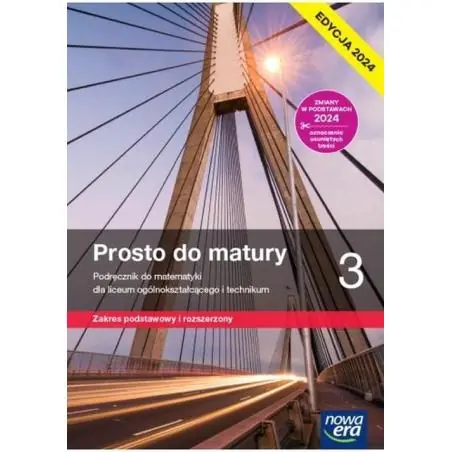 Edycja 2024. Publikacje dostosowane do zmian w podstawie programowej z 2024 r. Zawierają czytelne oznaczenia treści, które od września 2024 r. już nie obowiązują.Prosto do matury do klasy 3 dla zakresu podstawowego i rozszerzonego to podręcznik opracowany z myślą o wszystkich przygotowujących się do matury z matematyki.Pomaga oswajać się z egzaminem maturalnym przez kolejne lata nauki w szkole ponadpodstawowej dzięki zadaniom typu egzaminacyjnego po każdym temacie (zestaw Prosto do matury) i po każdym dziale (Powtórzenie). Pozwala przećwiczyć algorytmy i strategie matematyczne przydatne podczas rozwiązywania problemów matematycznych dzięki około 1500 zadaniom do samodzielnego rozwiązania. Ułatwia przypomnienie treści potrzebnych do zrozumienia wprowadzanych zagadnień, dzięki tematom Warto powtórzyć. Umożliwia samodzielną naukę dzięki rozwiązanym przykładowo zadaniom oraz odpowiedziom i wskazówkom do większości zadań.