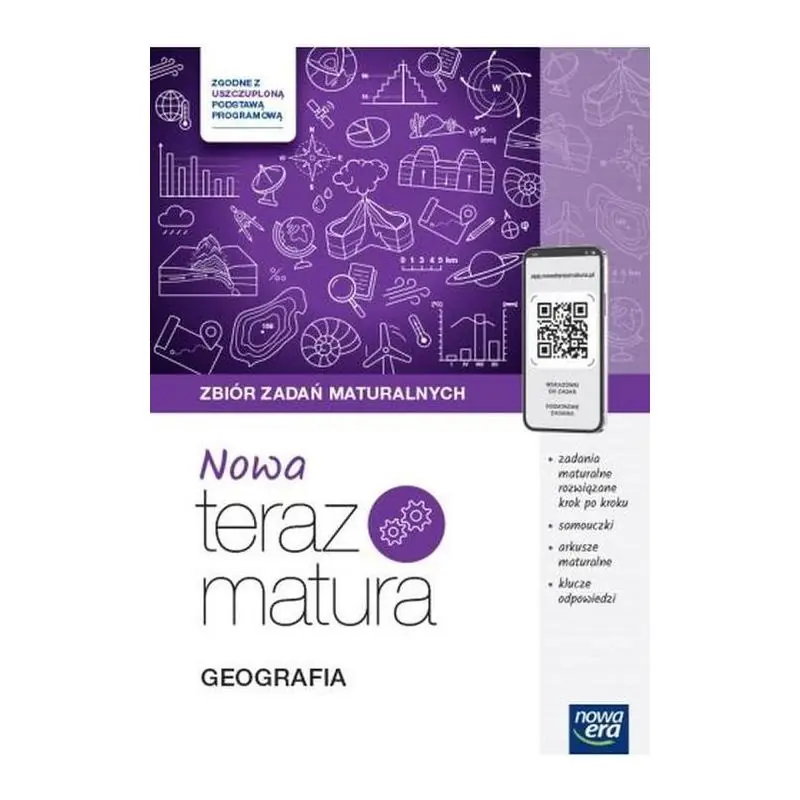 Zbiór zadań „NOWA Teraz matura. Geografia” umożliwia ćwiczenie rozwiązywania różnego typu zadań maturalnych i pracę z arkuszem. Pomaga oswoić się z formą egzaminu. Zgodne z uszczuploną podstawą programową kompletna baza ćwiczeniowa z optymalną liczbą wszystkich typów zadań maturalnych podzielona na rozdziały spójne z podziałem treści w Vademecum przykłady zadań maturalnych rozwiązanych krok po kroku, ze wskazówkami i zadaniami analogicznymi dostęp do materiałów cyfrowych, m.in.: tutoriali wideo, wskazówek do zadań i dodatkowych zadań maturalnych samouczki pomagające w wykonywaniu obliczeń matematycznych w geografii oznaczenie zadań najczęściej występujących na maturze arkusze maturalne klucze odpowiedzi do wszystkich zadań NOWA Teraz matura. I wiesz, jak zdać maturę. Dostęp do zasobów cyfrowych jest możliwy po rejestracji w aplikacji app.nowaterazmatura.pl i aktywacji kodu dostępu z publikacji. Kod umożliwia dostęp do materiałów od 1 września do 31 sierpnia następnego roku, niezależnie od dnia aktywacji.