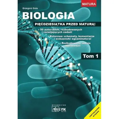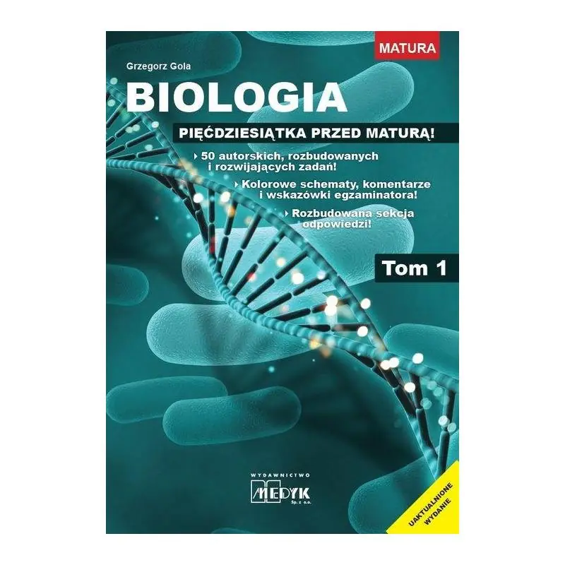 „BIOLOGIA – PIĘĆDZIESIĄTKA PRZED MATURĄ!” to seria zbiorów zawierających po 50 rozbudowanych i przekrojowych zadań w formule znanej z arkuszy wydawanych każdego roku przez Centralną Komisję Egzaminacyjną. Maturzyści mogą liczyć na solidną powtórkę wybranych zagadnień, rozbudowany schemat oceniania z obszernymi komentarzami i wskazówkami oraz na możliwość wcielenia się w rolę egzaminatora. Wszystko to pomoże w samodzielnym wyćwiczeniu i zrozumieniu sposobów udzielania odpowiedzi. Zadania różnią się poziomem trudności, dlatego z oferty skorzystać mogą nie tylko maturzyści, ale także uczniowie przygotowujący się do Olimpiady Biologicznej oraz wszelcy entuzjaści ciekawostek i łamigłówek przyrodniczych. 50 autorskich zadań maturalnych! Rozbudowany schemat oceniania z komentarzami egzaminatora! Zadania problemowe rozwijające myślenie przyczynowo - skutkowe i wiązanie faktów. Książka posiada wewnątrz kolorowe schematy / rysunki pomagające w nauce. Autor Grzegorz Gola Absolwent SGGW, nauczyciel biologii z wieloletnim doświadczeniem w prowadzeniu zajęć realizujących polską podstawę programową w zakresie rozszerzonym oraz programy anglojęzyczne, związane z maturą międzynarodową (MYP, a także IB Diploma Programme). Egzaminator Okręgowej Komisji Egzaminacyjnej w Warszawie. Książka jest uaktualnionym wydaniem V 2023, ISBN 978-83-66866-03-4