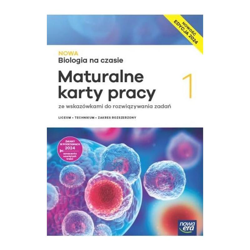 Edycja 2024. Publikacje dostosowane do zmian w podstawie programowej z 2024 oznaczono dopiskiem "Edycja 2024". Nowe „Maturalne karty pracy” dla klasy 1 to publikacja skorelowana z podręcznikiem "NOWA Biologia na czasie", dostosowana do nowej matury. Oswaja z formą zadań maturalnych i uczy, jak radzić sobie z różnymi typami zadań – już od 1