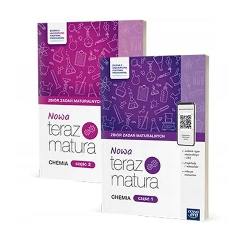 Zbiór zadań maturalnych „NOWA Teraz matura Chemia Część 1 i 2” pozwala wyćwiczyć umiejętności niezbędne podczas rozwiązywania zadań typu maturalnego oraz pracę z arkuszem. Jest w pełni skorelowany z Vademecum „NOWA Teraz matura. Chemia” i zawiera kody dostępu do dodatkowych materiałów.