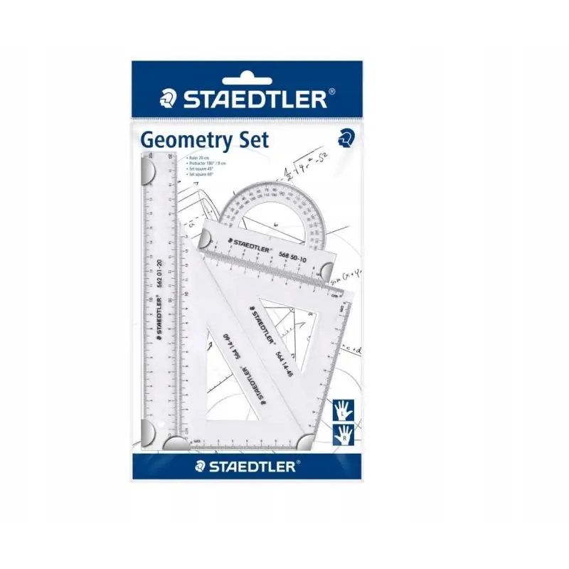 Zestaw komplet geometryczny STAEDTLER 20cm 4el. to wysokiej jakości narzędzia do matematyki i geometrii. W skład zestawu wchodzą linijka, ekierki i kątomierz, wykonane z trwałego tworzywa, zapewniające precyzyjne pomiary i rysowanie. Idealny do szkoły, pracy biurowej