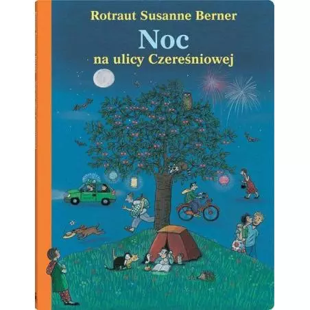Pełna zabawnych szczegółów, sympatycznych postaci i ujmująco codziennych sytuacji książka obrazkowa, w której nie pada ani jedno słowo. Nocna wyszukiwanka z bestsellerowej serii, która podbiła świat. Zapada noc. Ludzie i zwierzęta układają się do snu. Ale nie wszyscy spędzą tę noc w ciepłym łóżku. Niektórzy wybrali się na nocne czytanie do biblioteki. Albo na festyn w parku, by podziwiać fajerwerki. Inni wolą spacer przy świetle księżyca. A są i tacy, którzy ruszają w pościg za włamywaczem. Zobacz, jak wiele się dzieje na ulicy Czereśniowej w ciepłą letnią noc. Każda strona tej książki to barwna, pełna szczegółów i postaci ilustracja przedstawiająca fragment miasta. Na kolejnych rozkładówkach odnajdujemy tych samych bohaterów w różnych miejscach i momentach dnia. Wypatrywanie ich i układanie opowieści o ich przygodach to wciągająca zabawa na długie godziny. Ciepłe ilustracje Rotraut Susanne Berner, jej sympatyczni bohaterowie, humor i pogodny klimat ulicy Czereśniowej oczarowały już tysiące małych czytelników na całym świecie. „Noc na ulicy Czereśniowej” razem z „Wiosną...”, „Latem...”, „Jesienią...” i „Zimą” tworzy serię, która jak dotąd ukazała się w 15 krajach w łącznym nakładzie niemal 1 000 000 egzemplarzy.