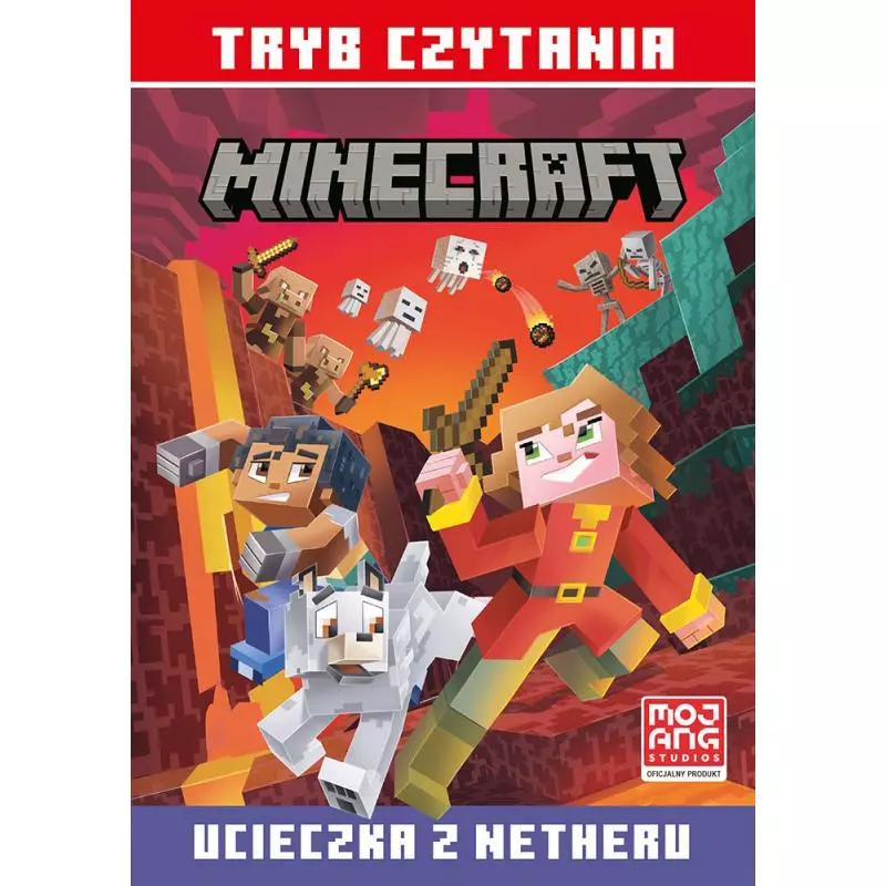 „Tryb czytania. Ucieczka z Netheru” to propozycja dla najmłodszych fanów i fanek Minecrafta, którzy dzięki tej książce udoskonalą umiejętność samodzielnego czytania. Emmy i Birch przeżywają kolejną przygodę. Tym razem wraz z Chapsem wybierają się do lasu. Wilk biegnie za rzuconym mu patykiem, ale już nie wraca. Szukając Chapsa, Emmy i Birch natykają się na portal do Netheru… Postanawiają przez niego przejść i trafiają do dziwnego kolorowego świata –nigdy wcześniej nie widzieli w Minecrafcie podobnego miejsca. Zajęci poszukiwaniem Chapsa, nie zauważają jednak, kiedy otaczają ich wrogie moby. Czy uda im się przetrwać i odnaleźć wilka? Krótkie, intrygujące opowiadanie, prosty język, duże ilustracje i pytania pomocnicze do tekstu zawarte na początku książki – wszystko to pozwoli pochłonąć historię, zrozumieć ją, w łatwy i przyjemny sposób przyswoić nowe słownictwo i przygotować do płynnego czytania bardziej złożonych książek. Niezwykła przygoda w świecie znanym z gry i doskonała zabawa gwarantowana. Czytanie nigdy nie było prostsze! W serii „Tryb czytania” ukazały się również książki: „Moby w Świecie Podstawowym”, „Górskie wyzwanie” i „Podniebna przygoda”.