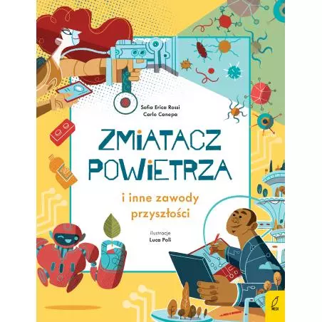 Koniec marzeń o tym, żeby zostać gwiazdą piłki nożnej czy baletnicą – dzięki tej książce dzieci dowiedzą się, jakie nowe zawody będą mogły wykonywać w przyszłości! Czy wyławiacz plastiku uratuje oceany przed plagą plastikowych śmieci? Czy zszywaczka DNA zreperuje chore genomy? Czy projektant dzikiej przyrody pomoże zachować zagrożone środowiska naturalne? Książka Zmiatacz powietrza i inne zawody przyszłości poprzez zabawne przedstawienie nieistniejących jeszcze zawodów, ukazuje najnowszy rozwój wiedzy i badań naukowych. Historia zabiera czytelnika w podróż w przyszłość, zapoznając z możliwymi odkryciami naukowymi na kilku polach: od fizyki, przez ekonomię, po biologię i ekologię.