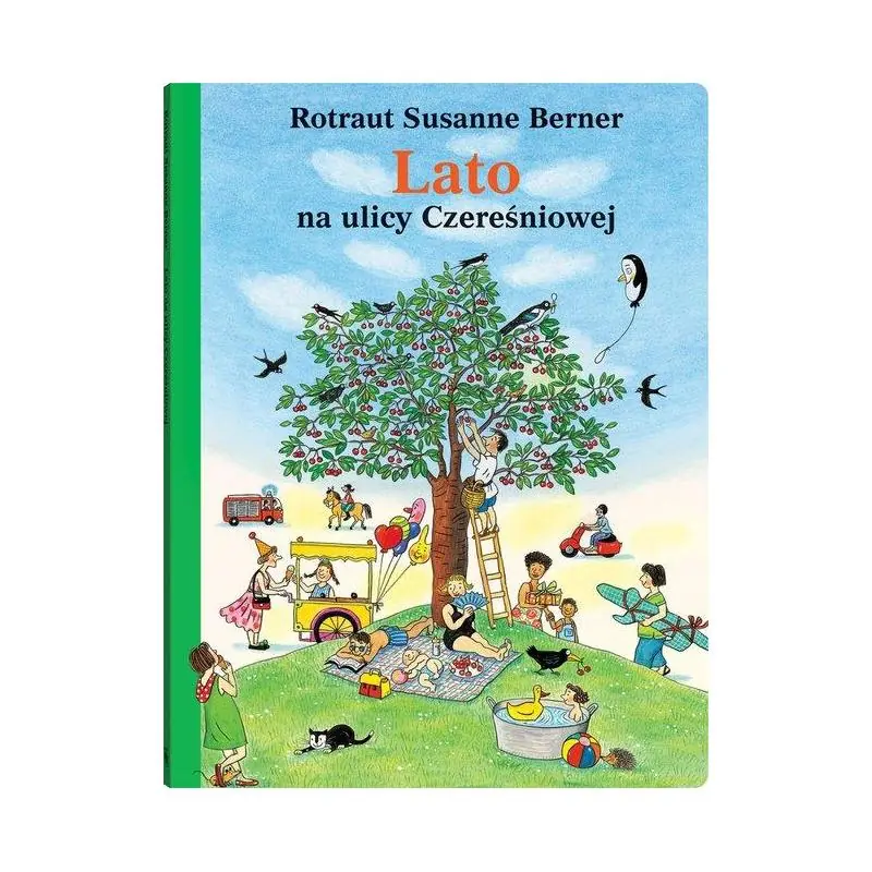 Pełna zabawnych szczegółów, sympatycznych postaci i ujmująco codziennych sytuacji książka obrazkowa, w której nie pada ani jedno słowo. Letnia wyszukiwanka z bestsellerowej serii, która podbiła świat. Nareszcie lato! Czereśnie już dojrzały, dzieci biegają boso po trawie, a sprzedawcy lodów mają ręce pełne roboty. Na ulicy Czereśniowej jak zawsze wiele się dzieje. Dokąd idą ci wszyscy ludzie z tajemniczymi pakunkami? Kto odnajdzie zgubione pingwiny? Co się stanie, gdy nadejdzie burza? Znajdź wszystkich bohaterów i śledź ich przygody na kolejnych stronach. Każda strona tej książki to barwna, pełna szczegółów i postaci ilustracja przedstawiająca fragment miasta. Na kolejnych rozkładówkach odnajdujemy tych samych bohaterów w różnych miejscach i momentach dnia. Historię każdego z nich można opowiedzieć na wiele różnych sposobów. Wyszukiwanie kolejnych postaci i tworzenie własnych opowieści o ich przygodach to wciągająca zabawa na długie godziny. Ciepłe ilustracje Rotraut Susanne Berner, jej sympatyczni bohaterowie, humor i pogodny klimat ulicy Czereśniowej oczarowały już tysiące małych czytelników na całym świecie. „Wiosna na ulicy Czereśniowej” i „Lato na ulicy Czereśniowej” otwierają polską edycję serii, która jak dotąd ukazała się w 15 krajach w łącznym nakładzie niemal 1 000 000 egzemplarzy.