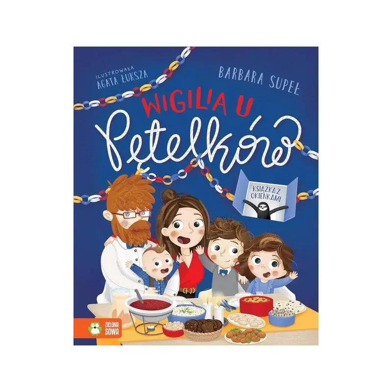 Pomóż rodzinie Pętelków przygotować się do Świąt! Bliscy i przyjaciele zbierają się w domu naszej ulubionej rodzinki. Robi się spore zamieszanie, bo nie wszystko jest gotowe, a czasu zostało niewiele – trzeba dokończyć ubieranie choinki, nakryć do stołu, doprawić dania, udekorować pierniczki, wyprasować koszule… i zrobić jeszcze mnóstwo innych ważnych rzeczy. Dzieci też chcą pomóc w przygotowaniach, ale niepokoją się, czy w tej świątecznej krzątaninie nie przegapią wizyty Mikołaja… „Wigilia Pętelków” to książka-wyszukiwanka z okienkami, która zapewni świetną zabawę, a przy okazji pomoże dziecku ćwiczyć orientację przestrzenną oraz nazywanie przedmiotów. Zabawa z dużymi, wieloelementowymi ilustracjami rozwinie także jego spostrzegawczość. Na każdej rozkładówce rozmieszczono kilka otwieranych okienek, w których dziecko odnajdzie jakiś przedmiot pojawiający się w tekście.