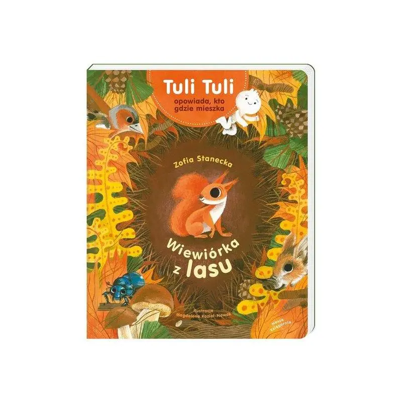 Jestem Tuli Tuli. Duszek opiekuńczy. Mieszkam na Ziemi. Wędruję po jej zakątkach. Zaglądam tam, gdzie jest życie. A ono jest wszędzie! W powietrzu. Na lądzie. W wodzie. Na najwyższych szczytach gór i w najgłębszych głębinach. Dziś opowiem wam o lesie… Kto tak hałasuje? To Kitka i jej bracia. Wiewiórczęta nie mogą się doczekać, kiedy opuszczą dziuplę. Mama wszystkiego je nauczy: jak skakać i biegać po drzewach, jak szukać jedzenia i suszyć grzyby, ale też tego, że trzeba być zawsze gotowym do ucieczki. Las jest piękny, ale i niebezpieczny… „Tuli Tuli opowiada, kto gdzie mieszka” to przepięknie zilustrowana seria edukacyjna dla najmłodszych. Każda książka to inne środowisko życia i nowy bohater. Dzieci śledzą jego przygody, a przy okazji poznają wiele przyrodniczych ciekawostek. Zofia Stanecka – czyta, odkąd pamięta. Córka nauczyciela i bibliotekarki, wychowała się pośród książek. Wielbicielka Leśmiana, Dickensa i Tolkiena, angielskich książek dla dzieci i teatru. Pisze książki o Basi, opowiadania i powieści. Najbardziej lubi wymyślać baśnie, w których znajduje się wszystko, co w literaturze kocha najbardziej: tajemnica, prawda, piękno i odrobina magii. Wyróżniona tytułem „Najlepsze dla dziecka” w plebiscycie czytelników miesięcznika „Dziecko” za serię o Basi (2009), uhonorowana wpisem na Listę Skarbów Muzeum Książki Dziecięcej w Warszawie za „Świat według dziadka” i „Domino i Muki. Po drugiej stronie czasu” oraz nagrodą jury w kategorii najlepsza książka dla dzieci w konkursie Najlepsza książka na lato za tytuł „Basia i wyprawa do lasu” (2015). Magdalena Kozieł-Nowak – jest ilustratorką ze skłonnością do przesady. Przesadza z pomysłami, z kolorem, ze słodyczami, a w wolnych chwilach przesadza kwiatki. I dobrze jej tak, bo nie lubi ograniczeń, chce eksperymentować z techniką i stylistyką ilustracji, by nie zanudzić siebie, a przede wszystkim dzieci. Zdarza się, że popełni rysunek satyryczny z nadzieją, że dzięki temu i dorośli czasem się uśmiechną. Po ukończeniu Akademii Sztuk Pięknych we Wrocławiu współpracowała z wieloma wydawnictwami i dzięki temu regał z książkami, do których robiła ilustracje, się zapełnia. Na szczęście jest jeszcze kilka wolnych półek i ma nadzieję, że kiedyś również będą zajęte. Ona także chce być zajęta tym, co robi, czyli kolorowaniem świata, do końca świata! Powyższy opis pochodzi od wydawcy.