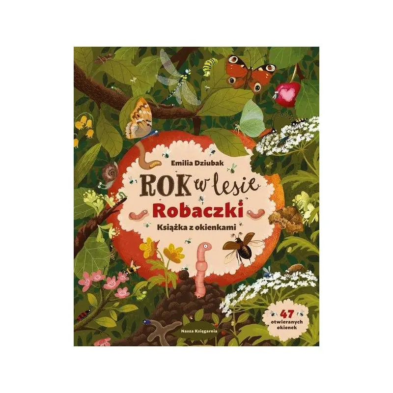 W lesie mieszka bardzo dużo najróżniejszych żyjątek. Nie zawsze widać, co robią w swoich domkach, ale dzięki tej książce wreszcie je poznacie! Otwórzcie prawie 50 okienek, by zajrzeć do mrowiska, do ula i pod korę drzewa. Zobaczcie, jakie nietypowe schronienie ma larwa chruścika, i odwiedźcie dom leśniczego, w którym jest coraz więcej nieproszonych gości... Zaobserwujcie przemianę poczwarki w motyla, poszukajcie wszędobylskich much i prześledźcie pełne grozy sceny z pająkiem lub pijawką w roli głównej. A potem sprawdźcie, jak kamuflują się motyle i jakie owady można spotkać nocą! W świecie robaczków tyle się dzieje, że książkę można oglądać godzinami. Zapraszamy do zabawy! Emilia Dziubak – autorka i ilustratorka książek dla dzieci. Absolwentka Akademii Sztuk Pięknych w Poznaniu. Współpracuje z autorami i wydawnictwami w Polsce i za granicą. Laureatka Nagrody Literackiej m.st. Warszawy w 2014 r. Laureatka nagrody „Przecinek i Kropka” w konkursie na najlepszą książkę dziecięcą w 2016 r. Wyróżniona w 2016 r. w konkursie PTWK Najpiękniejsze Książki Roku 2015 za autorską książkę „Rok w lesie”. Laureatka nagrody „Żółta Ciżemka” w 2017 r. W 2018 r. wyróżniona w konkursie Książka Roku Polskiej Sekcji IBBY. Laureatka nagrody Soligatto 2019. Powyższy opis pochodzi od wydawcy.