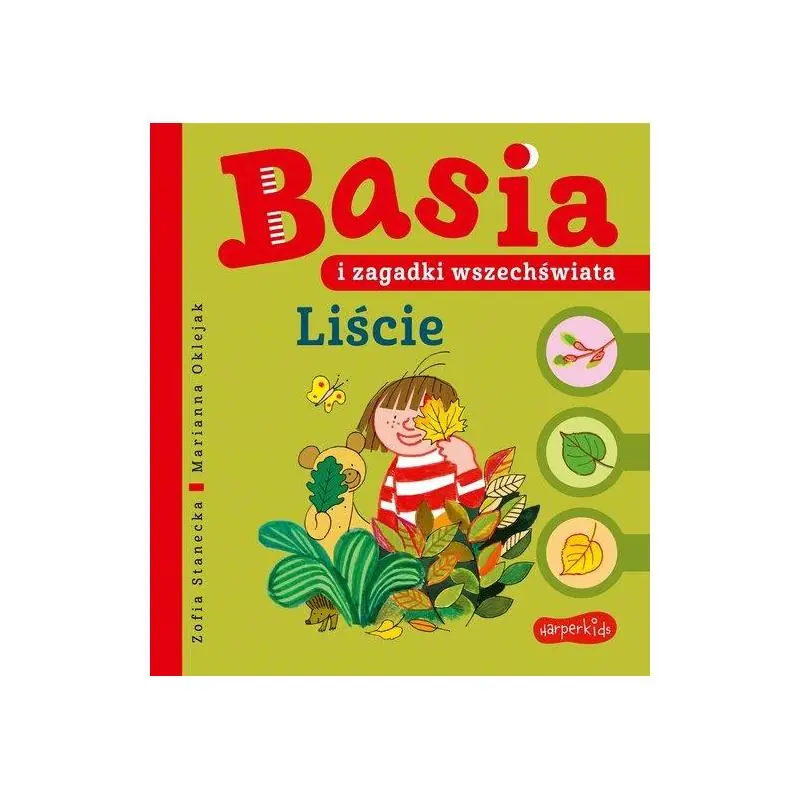 Basia z utęsknieniem czeka na wiosnę. Jej zwiastunów szuka w pogodzie i w świecie przyrody. Nadzieję na zmianę pory roku dają rosnące na gałęziach drzew pączki. Kiedy po jakimś czasie pączki zmieniają się w delikatne listki, Basia jest zachwycona. Zaprzyjaźnia się z liściem pewnej lipy i z fascynacją obserwuje zachodzące w nim zmiany. Okazuje się, że życie liścia może być bardzo ciekawe. „Basia i zagadki wszechświata” to nowy cykl książek, w których rezolutna przedszkolaczka odkrywa piękno i różnorodność otaczającego ją świata. Zwyczajne z pozoru wydarzenia stają się dla Basi punktem wyjścia do zadawania pytań i szukania na nie odpowiedzi. Ciekawi świata czytelnicy znajdą w książce nie tylko opowiadanie o swojej ulubionej bohaterce, lecz także pięknie zilustrowane strony z informacjami m.in. o tym, jak zbudowany jest liść, jak rozpoznawać liście różnych gatunków drzew, a także do czego możemy wykorzystywać liście w codziennym życiu. „Basia i zagadki wszechświata” to także wspaniała propozycja dla rodziców, którzy razem z dziećmi przeżyją ciekawą czytelniczą przygodę i zagłębią się w niesamowity świat wiedzy!