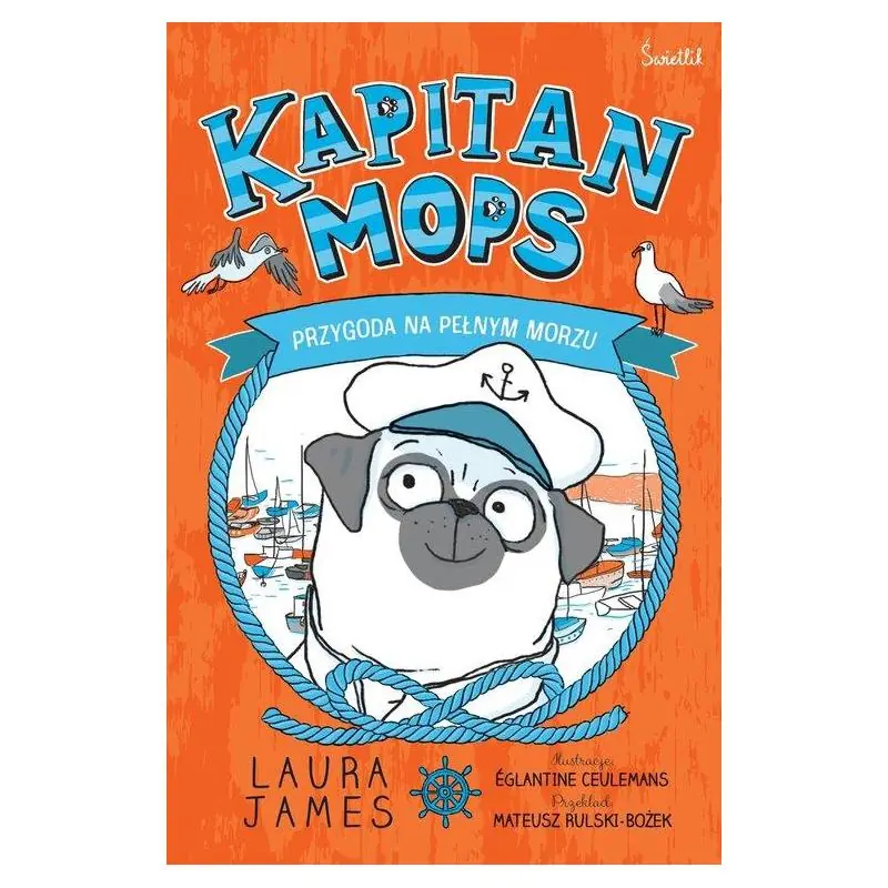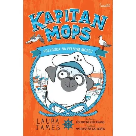 „Przygody Mopsa” autorstwa Laury James to seria zabawnych opowieści o sympatycznym Mopsie oraz jego opiekunce, Pannie Mirandzie. Mops, choć nieco niezdarny, zawsze znajdzie się w centrum najciekawszych wydarzeń – raz jest kapitanem statku, innym razem kowbojem na Dzikim Zachodzie lub groźnym piratem. To także wierny, oddany i kochający przyjaciel Panny Mirandy. Mimo swoich psich lęków, Mops zawsze stara się je przezwyciężyć, chętnie próbuje nowych rzeczy i nigdy się nie poddaje. W pierwszej książce z serii „Przygody Mopsa”, Panna Miranda zostaje zaproszona na przyjęcie nad jeziorem, gdzie goście mają pływać na rowerkach wodnych. Mops, ze strachu przed wodą, nie czuje się pewnie podczas tego wydarzenia. Uwagę pieska przyciąga jednak piknikowy kosz ze smakołykami... Gdy wieko kosza opada, zaczynają się kłopoty! Koszyk z Mopsem w środku zostaje zabrany do autobusu, a psiak wplątuje się w morskie przygody i staje się prawdziwym kapitanem statku! Tylko co z jego strachem przed wodą? Seria nieoczekiwanych zdarzeń doprowadzi do zabawnych sytuacji, wywołując mnóstwo śmiechu podczas czytania. „Przygody Mopsa” to książki idealna dla młodszych dzieci, zwłaszcza tych, które zaczynają samodzielnie czytać i uwielbiają zabawne historie z niesamowitymi bohaterami w roli głównej. Młodzi czytelnicy i rodzice pokochają opowiadania o Mopsie za poczucie humoru, ciepło i lekkość, z jaką ukazują, jak ważne są przyjaźń, odwaga i akceptacja własnych ograniczeń.