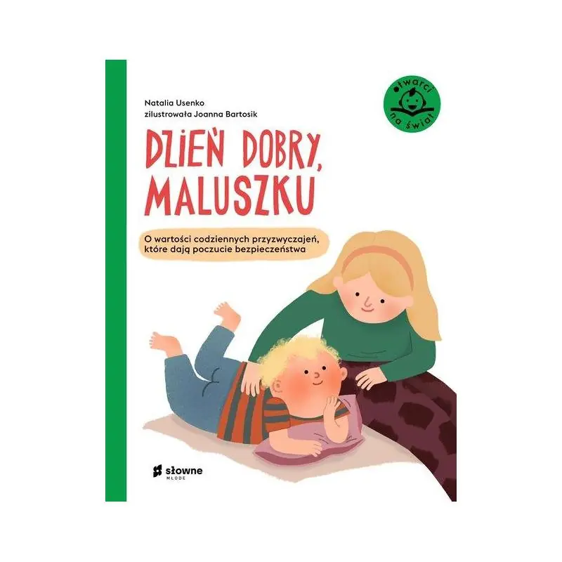 Kartonowa książka z kolorowymi ilustracjami i wpadającymi w ucho krótkimi rymowanymi tekstami. O tym, że dobre relacje rodzinne dają dziecku poczucie bezpieczeństwa i pozwalają mu harmonijnie się rozwijać. Od pobudki do zaśnięcia – dzień maluszka jest pełen zajęć. I pełen wrażeń. Bo przecież wszystko, co robi – ubieranie, posiłki, spacer, kąpiel, nawet siedzenie na nocniku – to przygoda! W ten sposób, pod czułą i uważną opieką bliskich, zdobywa nowe umiejętności, uczy się samodzielności i nabiera pewności siebie. Seria Otwarci na Świat to książki, które wspierają rozwój najmłodszych dzieci. Podejmują tematy bliskie codziennemu doświadczeniu maluchów. Pomagają im poznawać otaczający świat i rozumieć własne emocje, rozbudzają empatię i twórcze myślenie.
