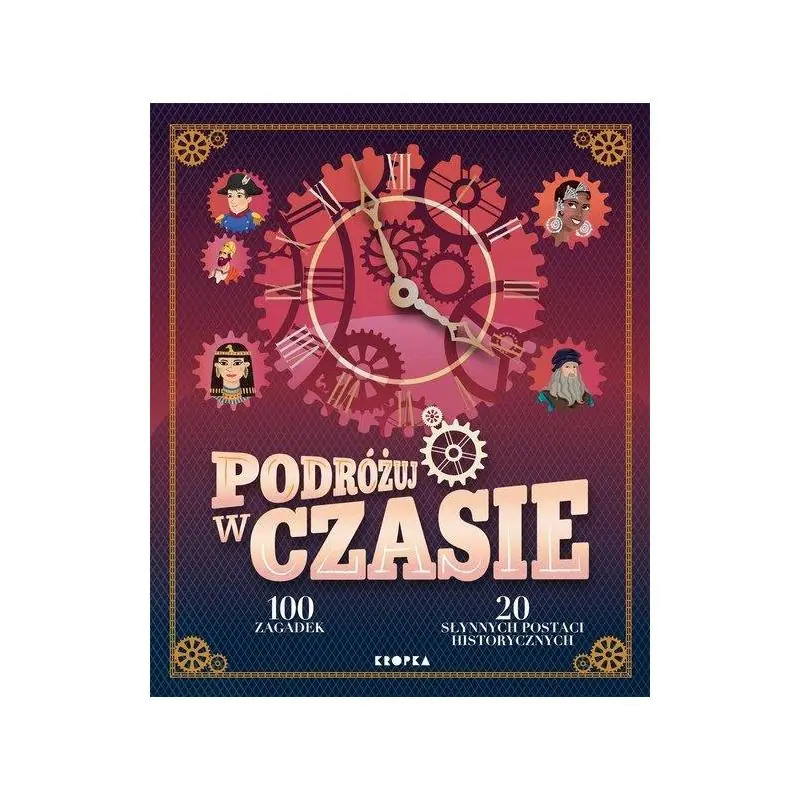 „Podróżuj w czasie” zabiera nas na spotkanie z wybitnymi postaciami historycznymi takimi jak Kleopatra, Gutenberg, Leonardo da Vinci, Louis Pasteur, Mahatma Gandhi czy Neil Armstrong. Niewątpliwym wyróżnikiem tej publikacji są zamykające każdy rozdział rozkładówki z mnóstwem zagadek, rebusów, labiryntów i zadań na spostrzegawczość. Dwadzieścia postaci historycznych i 100 zagadek – ta książka to nie tylko podróż w czasie, ale również znakomite połączenie nauki i zabawy!