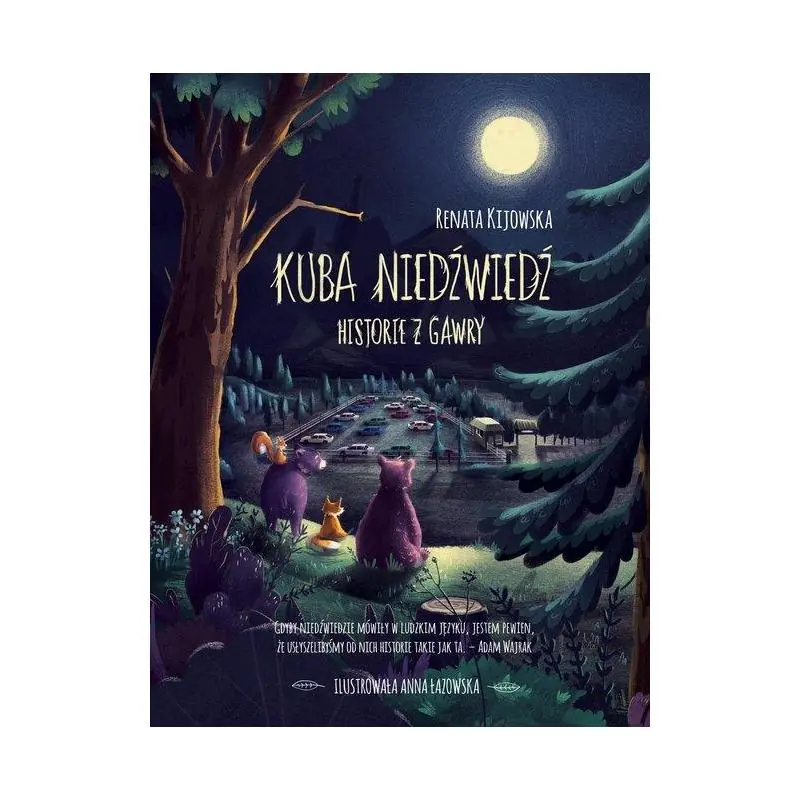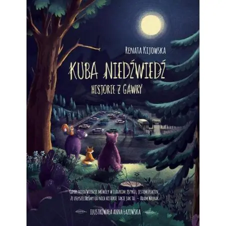 Choć mama ostrzegała, że ludzie mogą być niebezpieczni, niedźwiadek Kuba nie może powstrzymać ciekawości. Wraz z bratem Beniem buszuje po lesie w poszukiwaniu przygód i… kuszących przekąsek. Towarzyszą im narwana wiewióra zwana Wiórą i nowy kolega, lis Staszek. Zwierzaki są gotowe nawet włamać się do samochodu, by spróbować pysznych batonów i zapomnianych ogryzków jabłek. Do czego doprowadzi ich spotkanie z ludźmi? Jaka kara grozi za niedźwiedzie wybryki?… Moich synów szybko znudziły wszystkie książki, które wspólnie czytaliśmy. Chcieli czegoś więcej: prawdziwych historii z pazurem! Wypytywali o moją pracę – tym chętniej, że akurat przygotowywałam reportaże o zwyczajach niedźwiedzi. A ponieważ ich pytania się nie kończyły, sprawdzałam każdy szczegół: rozmawiałam z niedźwiedziologami, z pracownikami Tatrzańskiego Parku Narodowego, odwiedzałam obserwatorów i opiekunów, którzy o zwierzętach wiedzą wszystko. Opowiadali z wypiekami na twarzach, a ja sama miałam dreszcze, kiedy po raz pierwszy spojrzałam w oczy małej niedźwiedziczce. Losy bohaterów książki oparłam więc na autentycznych wydarzeniach – zabawnych, wzruszających, a nieraz także tragicznych. Mam nadzieję, że zaprzyjaźnicie się z niedźwiedziami tak samo jak ja! Renata Kijowska